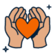 Heart icon surrounded by people holding hands