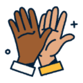 Person holding hands with a person in a wheelchair celebrating
